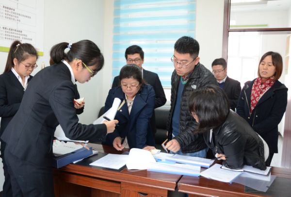 ▲11月2日,省市场监督管理局组织的资质认定专家评审组,在万荣县综合检验检测中心查看资料。 姚蕊娜 摄