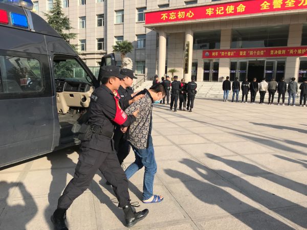 十月二十九日,芮城公安押解犯罪嫌疑人回到该县公安局。记者 刘 杰 摄