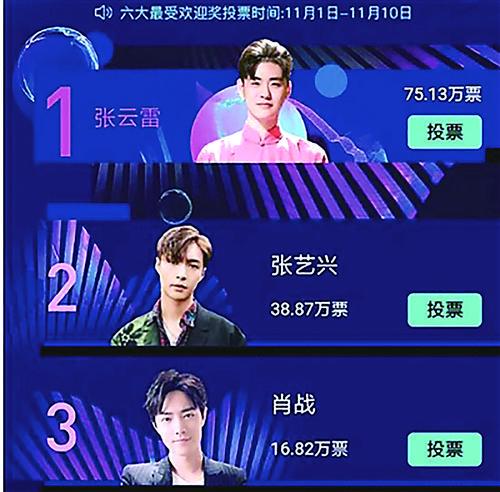 目前投票还没结束,榜单排名实时发生变化。截至记者发稿,张云雷以175.79万票排名第三。