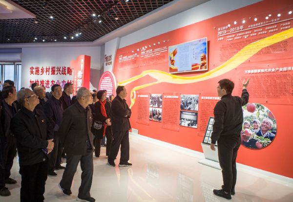 ▲11月5日,万荣县离退休干部党员,在该县苹果博览馆参观展览。 特约摄影 李克荣