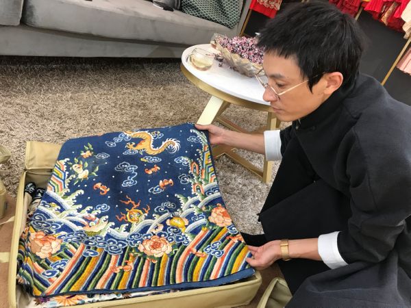 “4年前我在日本看到了中国的绣衣,4年后我带着我收藏的绣衣回到第一眼看到它们的地方,想给更多的人看到中国的绣衣。当时的展览惊艳了许多人,他们都纷纷感叹中国绣衣的美。”