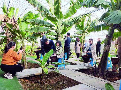 立冬后的北方略显萧瑟,而眼前的绿意盎然跟外边的草木枯黄形成了明显对比。在雨林音乐会大棚中,搭起的支架上藤蔓缠绕,走进细看,上面还挂着拳头大的绿色果子,人们开始纷纷猜测起来。“这是青皮核桃吗?”“有点像梨……”讲解老师告诉大家这是百香果,一阵惊叹之后,不少人开始拿起手机拍照,孩子们则兴奋地在其间穿梭来穿梭去。