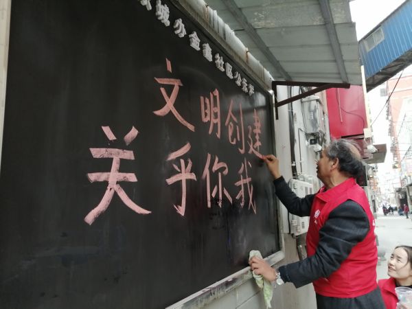 为进一步凝聚社区力量,广泛动员社区居民参与文明创建工作,金鑫社区同共驻共建单位市委党校开展了环境卫生大整治活动。志愿者走进社区大街小巷,清理小广告、整理“不修边幅”的电缆、向临街商户和市民发放文明城市创建宣传手册、更换文明创建黑板报……市委党校谢殿铎说,近几年都很少写板书了,参加文明创建出个板报,感觉很有一番韵味。用板书宣传文明城市创建,丰富了文明创建工作的宣传形式,有利于营造共创的良好氛围。