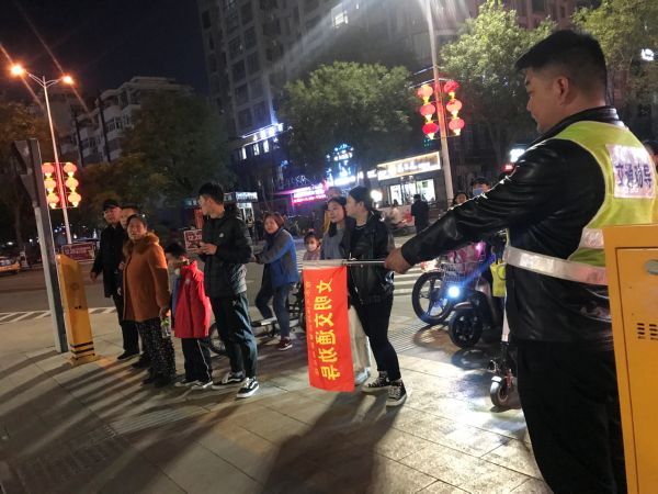 11月14日晚6时许,市水土保持监督监测总站、市交通运输综合行政执法队8名党员志愿者,身披交通劝导反光马甲,手持文明交通劝导旗,在市区学苑岗开展文明交通劝导志愿服务活动。