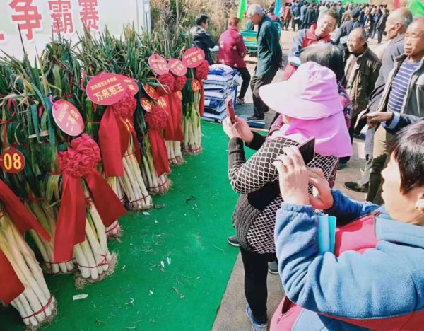 ▲在戴上红花的获奖大葱前,人们竞相拍照发朋友圈。 王斌 摄