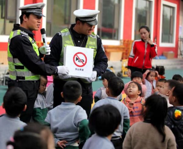 宣讲中,民警结合幼儿身心特点,用通俗易懂的语言教小朋友“红灯停、绿灯行、黄灯亮时等一等”,人行横道的标志灯、“斑马线”的作用是什么……让幼儿知道在日常生活中行走、过马路、乘车时应如何注意安全。同时,采取模拟情景形式,教孩子们认识交通指挥手势,如何安全过马路。