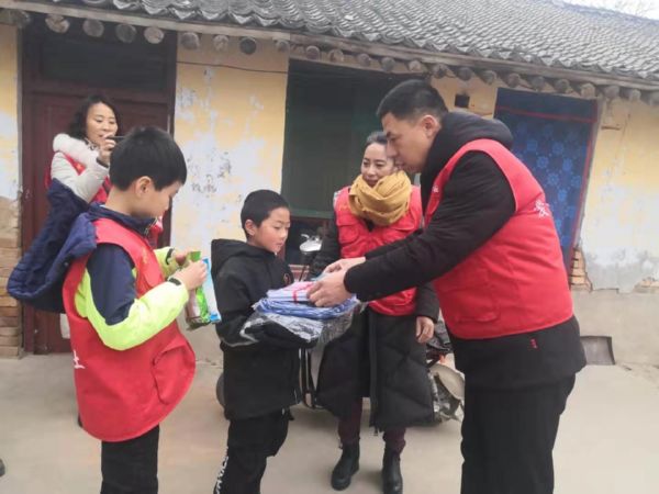 当天一大早,志愿者在该县县城北公园集合,带上提前准备好的书本、书包、棉衣等慰问品,前往皇甫乡6名留守儿童的家中,送去冬日的关怀。