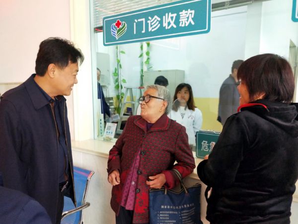 ▲11月25日,万荣县医保局局长任红军(左)在调研“日间病房”试点情况。陶登肖 摄