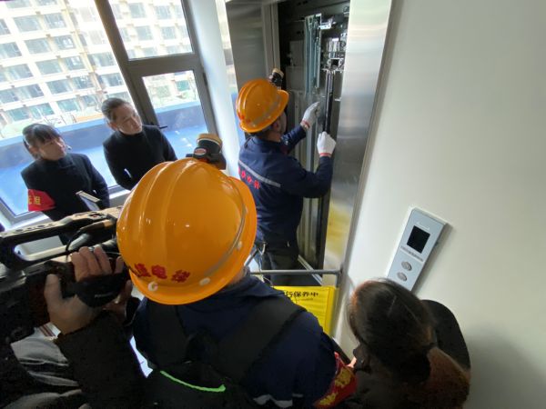 运城晚报讯(记者 刘凯华)“是值班室吗?我们被困在电梯里面了,快来救救我们!”11月28日上午9时40分,市区鑫地理想城小区的两名业主乘坐电梯上行,在电梯运行至3楼时发生故障,人员被困,情况十分危急。鑫马物业值班人员通过视频监控发现后,迅速报告物业经理和市场监管部门及维保单位,并组织救援行动,救援组、安抚组、医疗组迅速出动前往事故地点。