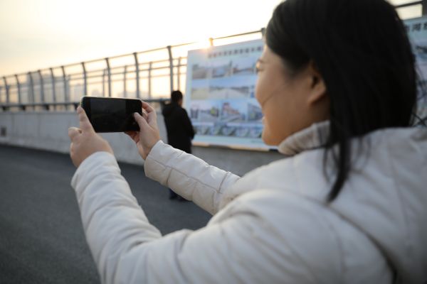 观摩人员用手机拍摄即将通车的河东西街延长线 祁克宁 摄