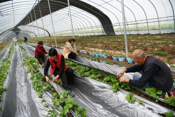 12月2日,闻喜县郭家庄镇西宋村晶丰玉种植专业合作社社员在草莓大棚铺膜。