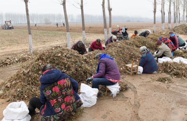 12月2日,河津市柴家村的村民正忙着采摘收获中药材。