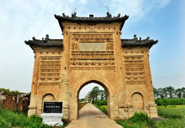 牌坊位于东姚温村西300米,为明代旌表蒲州故民卫武之妻张氏节孝坊。坊坐西朝东,通面阔9.75米,进深2.66米,占地面积25.94平方米。