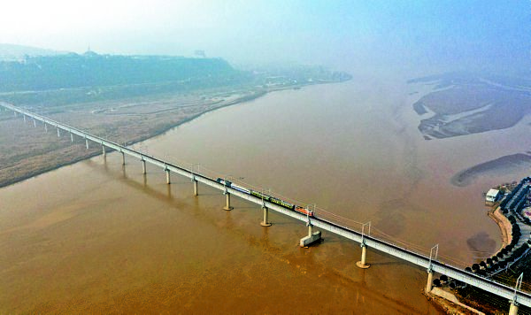黄河风陵渡铁路桥位于晋陕交界处,1970年10月建成通车。2019年,铁路部门历时8个月对1199米的黄河风陵渡铁路桥全部更换钢梁并进行电气化改造。风雨兼程近50载的黄河风陵渡铁路桥换上了新颜,与此同时,南同蒲铁路运能将大幅提升。 陶明 焦宏涛 摄 新华社发