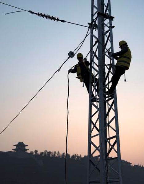 中国中铁电气化局建设者在黄河风陵渡铁路桥上进行电气化改造(12月6日无人机拍摄)