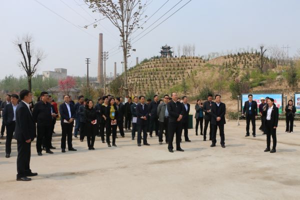 ▲4月3日,运城市创建国家森林城市国土绿化现场推进会在河津召开,观摩团在当地参观生态治理项目。(资料图)