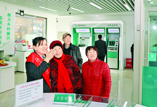 ▲平陆县常乐镇支行员工为群众介绍相关业务