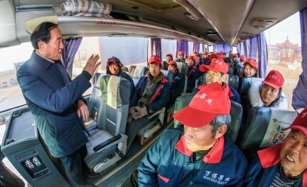 ▲跨省学习出发前,领队王万保在讲解注意事项