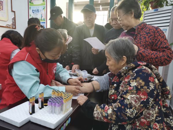 活动现场,社区工作人员组织老人们有序进行血压、血糖、彩超、心电图等检查,并将老人们的血液样本、尿液样本送往医院做进一步的检查。