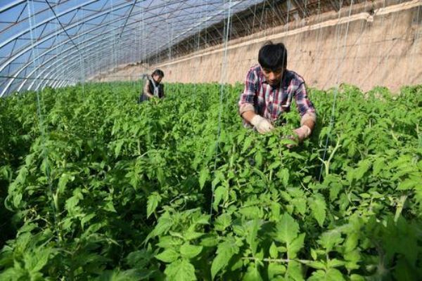 12月13日,闻喜县裴社乡裴社村菜农在大棚里管理西红柿,力争春节前上市。特约摄影 温徐旺 摄