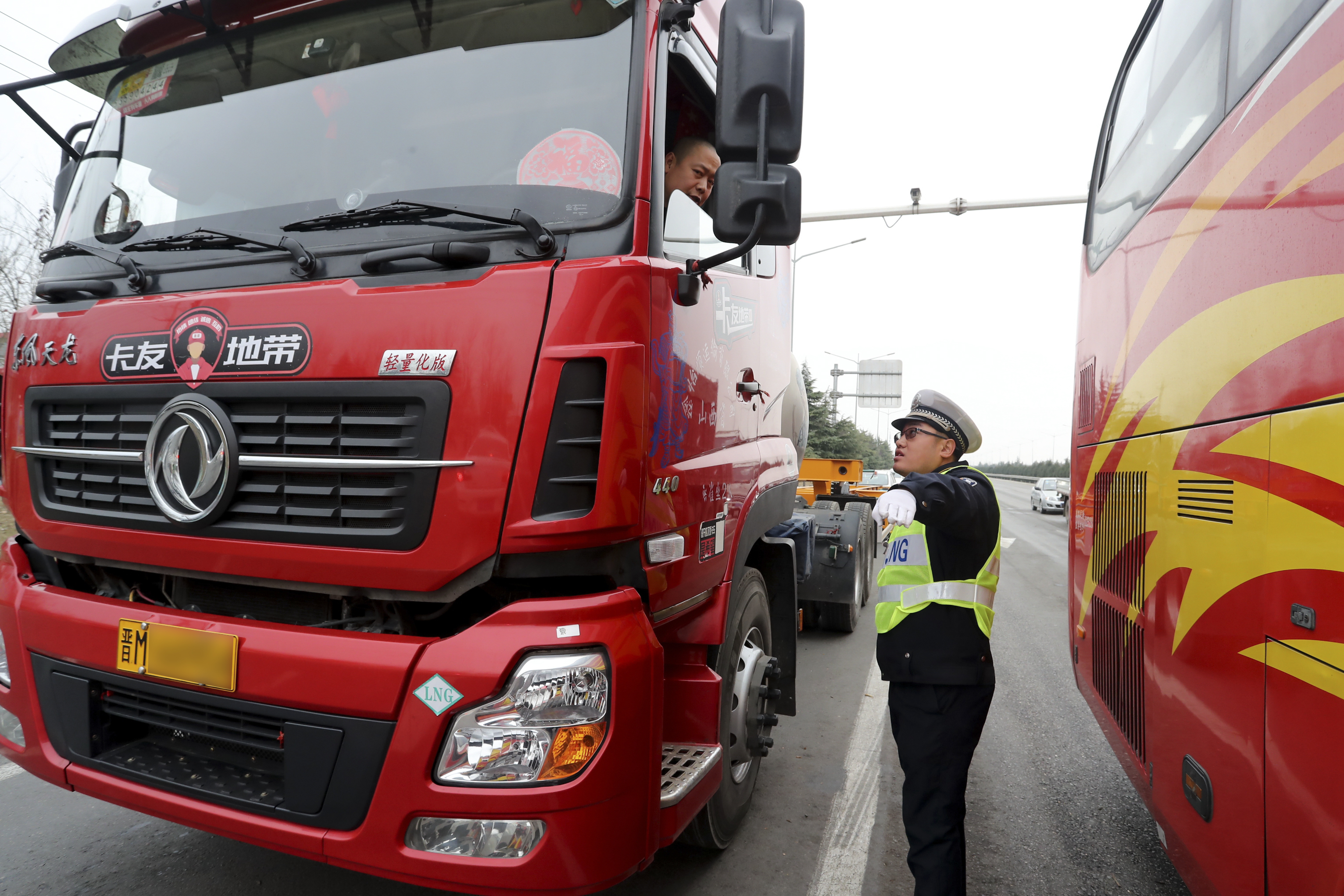 ▲盐湖交警大队民警在运城北劝返重型柴油货车特约摄影 葛崇收