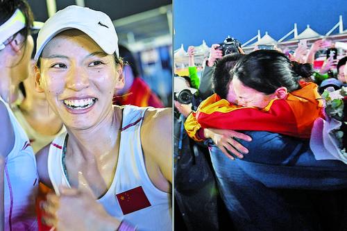 ▲左图为10月24日,中国队选手王炜(右)在第七届世界军人运动会现代五项女子团体决赛后与队友庆祝。新华社记者 熊琦 摄
