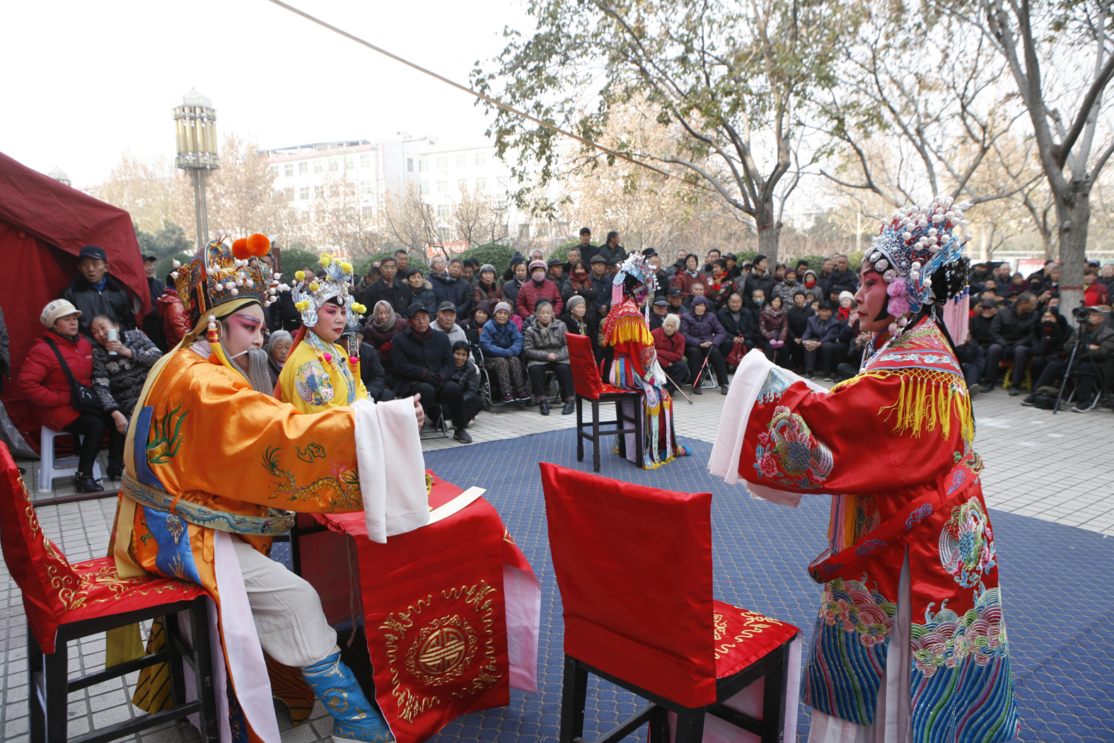 12月19日,南风广场戏迷演唱团在为观众演出蒲剧《金水桥》折子戏。当日的演出,是该团纪念建团24周年暨庆元旦的第二场演出。两天共为观众演出6个小时的精彩蒲剧选段。 由蒲剧爱好者李淑惠创办的南风广场戏迷演唱团,自1995年组团以来,24年如一日,坚持为运城市民演出健康向上的蒲剧,既弘扬了传统文化,又丰富了群众精神文化生活。