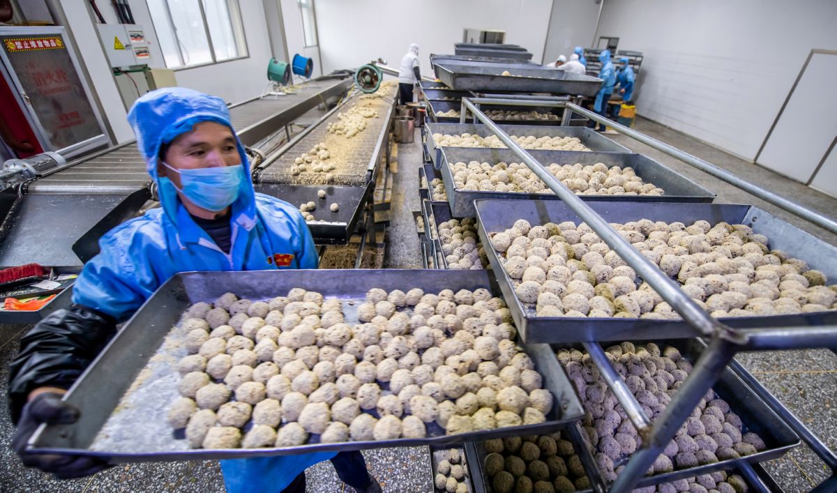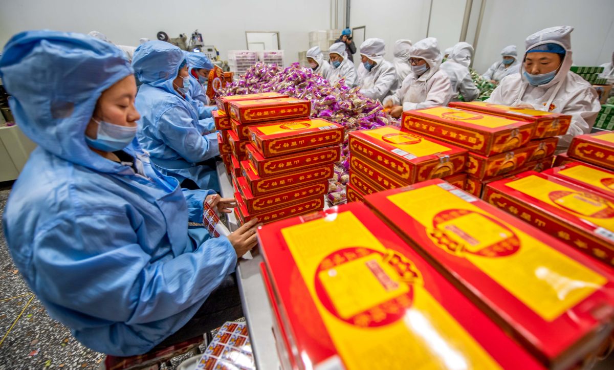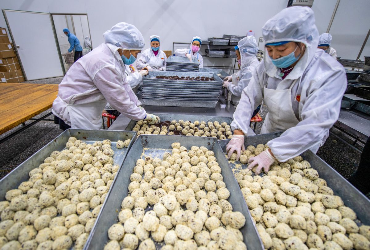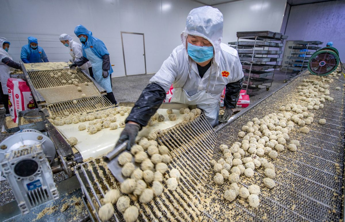 元旦春节临近,闻喜县任诚意煮饼食品开发有限公司的车间里,员工们你揉我捏、你装我包,紧张地生产煮饼,以确保节日市场的需求。