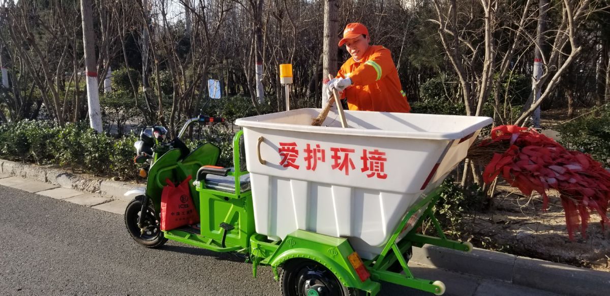 环卫工人用上了电动三轮保洁车 范楚乔 摄