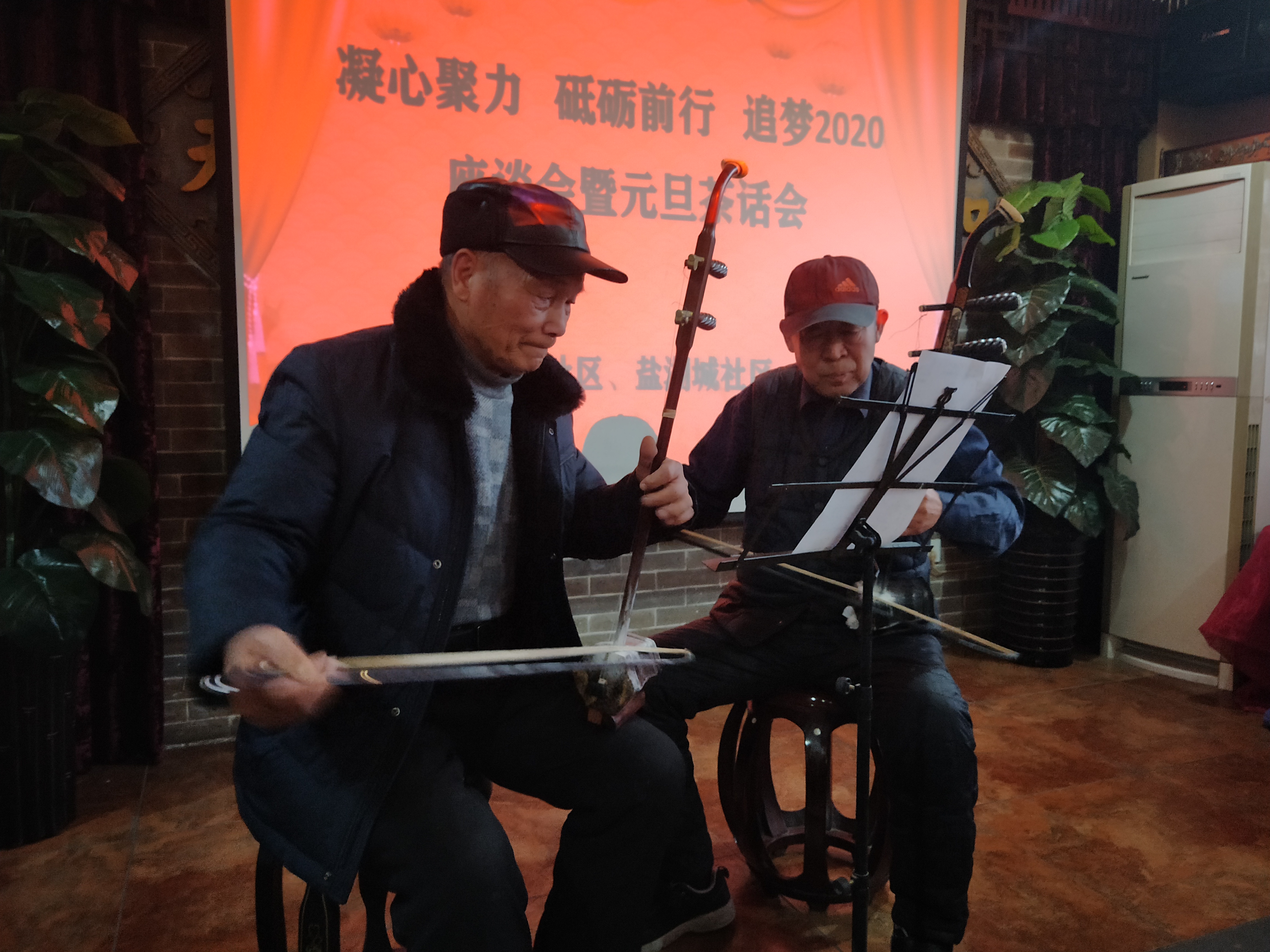 茶话会在祥和社区辖区的天地人和茶馆举办,党员们积极上台演唱歌曲《欢聚一堂》、黄梅戏《女驸马》选段等,老党员赵以智和韩晓春还现场拉二胡《银灯结彩》《人说山西好风光》,大家在一派欢乐、祥和的气氛中辞旧迎新,共庆佳节。
