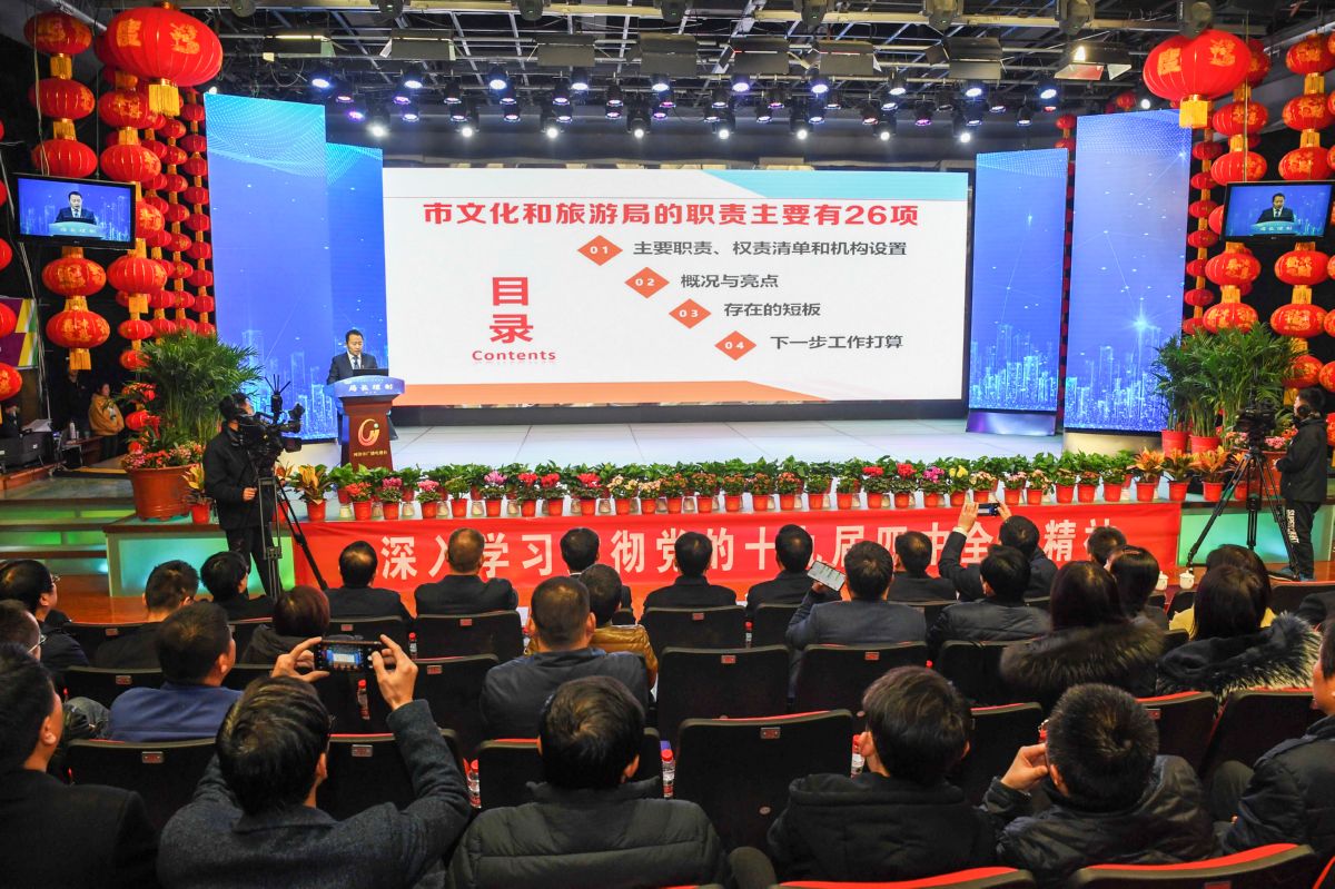 2019年12月28日,河津市某单位“一把手”在该市电视台演播大厅通过《局长理制》栏目向现场及电视机前的观众讲述自己分管领域的职责。该栏目的推出是河津市狠抓制度建设的又一项创新举措。 特约摄影 郝永宏 摄
