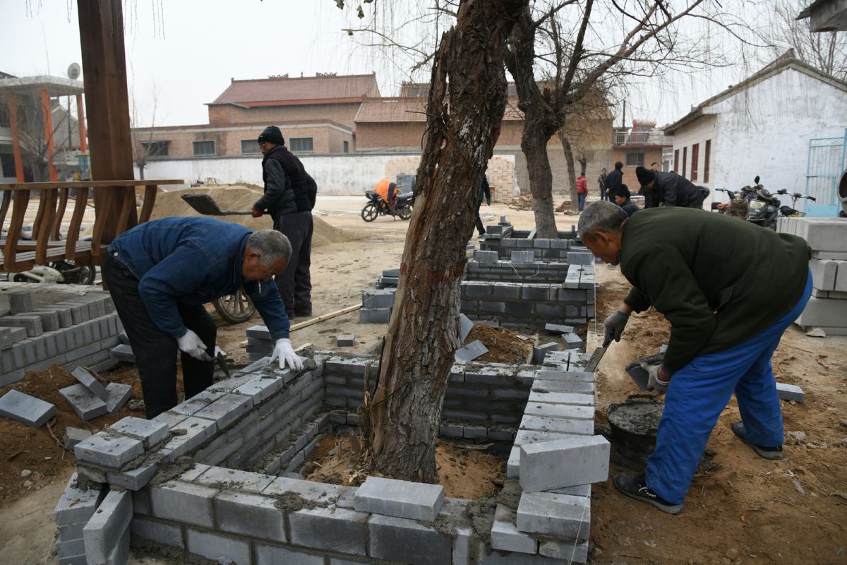 昨日,闻喜县侯村乡柴家峪村村民在新时代文明实践站建设工地施工。