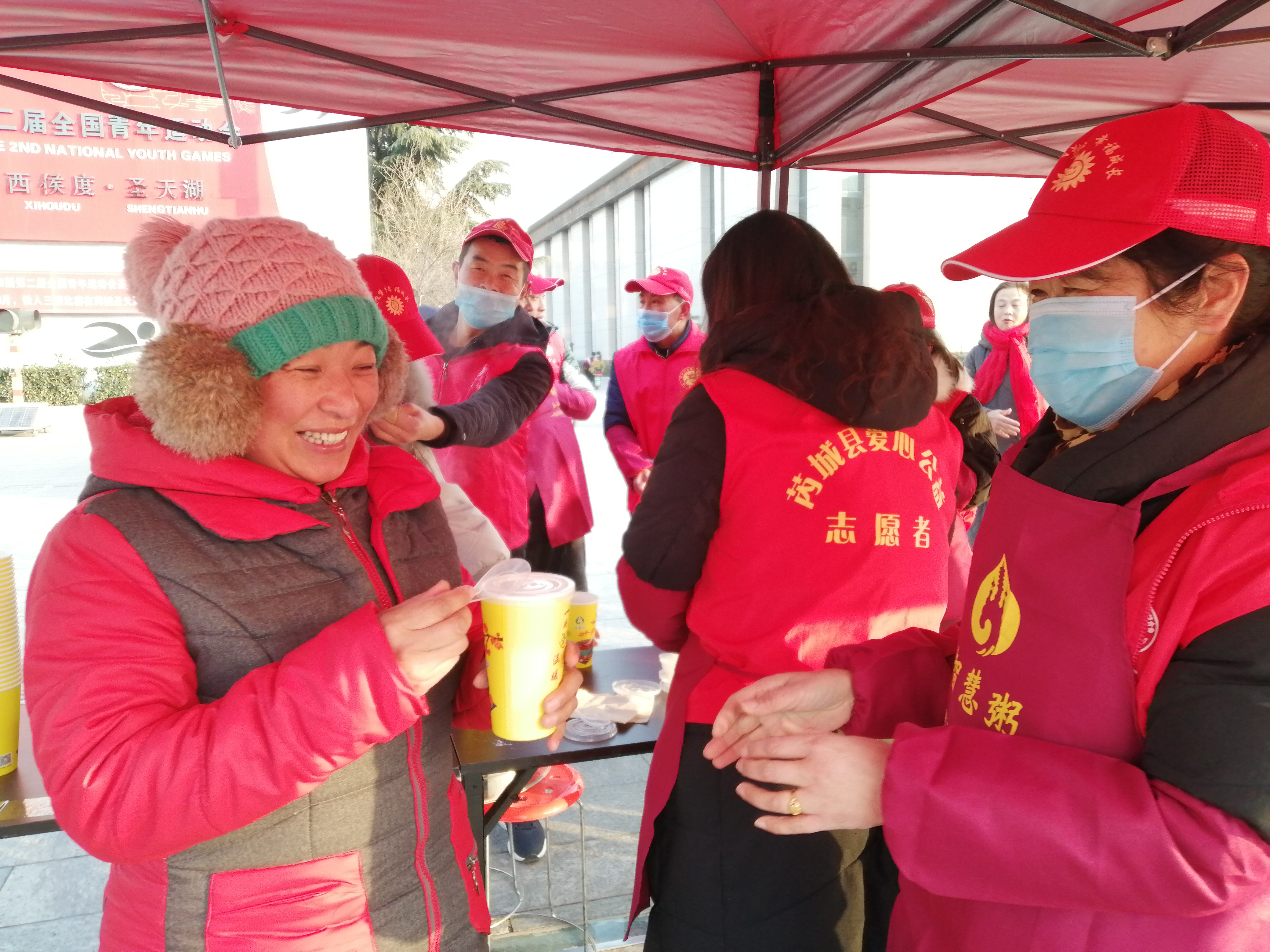 腊八节来临之际,芮城县爱心公益志愿者协会与圣寿寺联合开展“一碗腊八粥 温暖一座城”腊八节志愿服务活动,先后在城区会展中心、社区和圣寿寺广场设点发放腊八粥,并开展义写春联服务,把2000多份腊八粥和200多幅对联送到交警、环卫工人和群众手中,让大家在寒冬中感受到了阵阵暖意。吕红娟 摄。