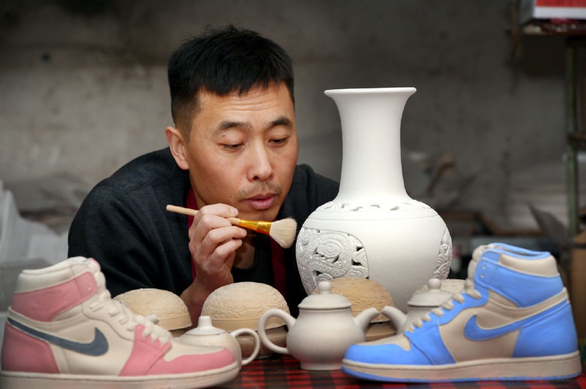 王国强在创作陶艺作品