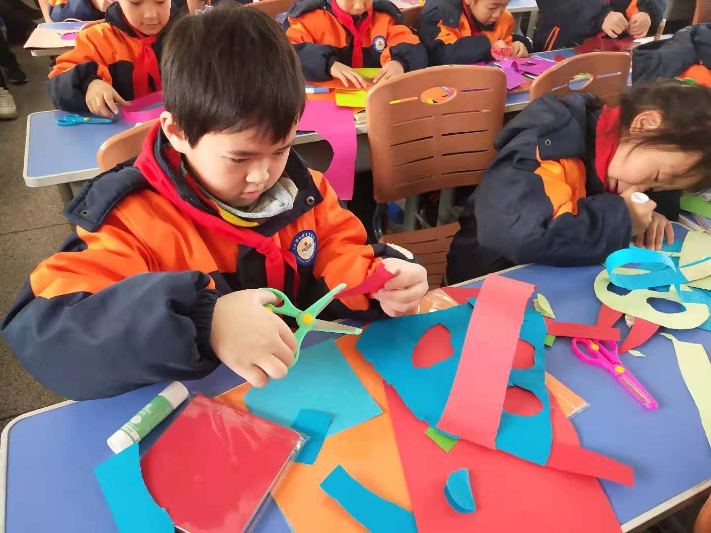 活动中,二年级1班班主任齐以阳进行了《纸船和风筝》语文课讲,带孩子们进入了童话般的世界;教师朱美娟进行了《农家小院》数学课讲,让孩子们在欢声笑语中感受数字的奇妙;教师宁耀渊进行了《猜猜我是谁》课讲,彩色卡纸在孩子手中变成了一幅幅美丽画卷(上图)……