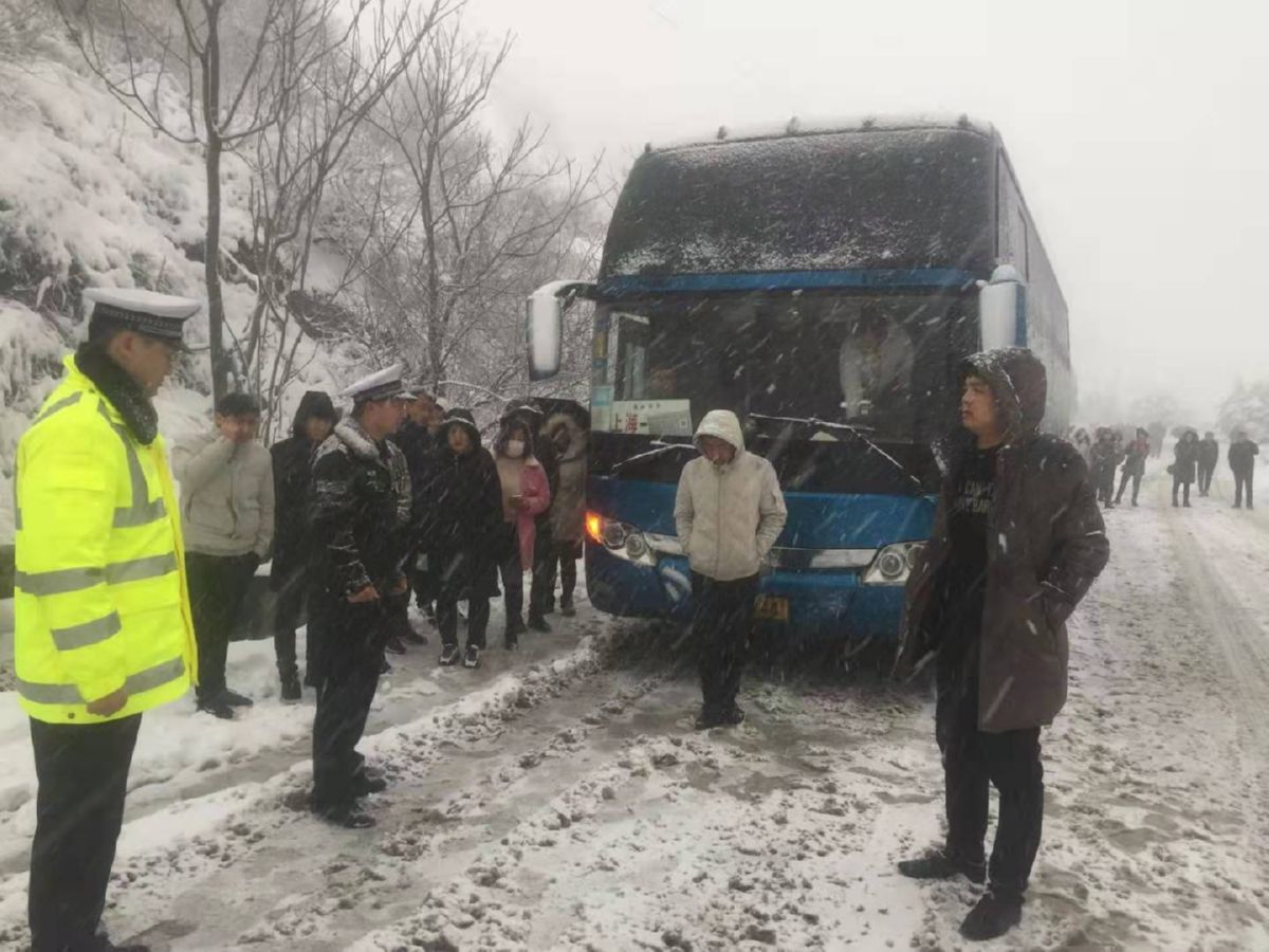 ▲垣曲交警引导被困客车至安全地带