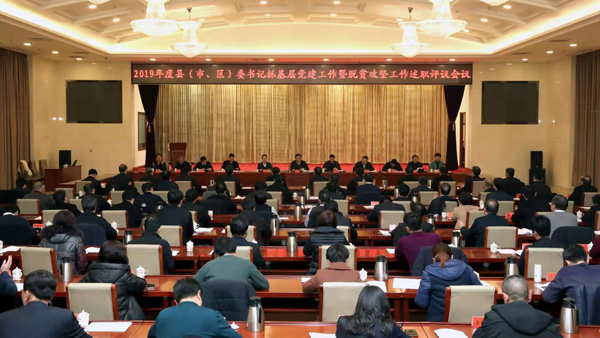 本报讯(记者 王文军)1月7日,市委召开2019年度县(市、区)委书记抓基层党建工作暨脱贫攻坚工作述职评议会。市委书记丁小强主持会议并讲话,强调要锻造更加坚强有力的基层党组织,坚决打赢打好脱贫攻坚战,为全面建成小康社会、实现高质量转型发展奠定坚实基础。市委副书记、市长朱鹏,市人大常委会主任安雅文,市政协主席张润喜,市委常委等出席会议。省委组织部组织三处副处长杨牡江到会指导。