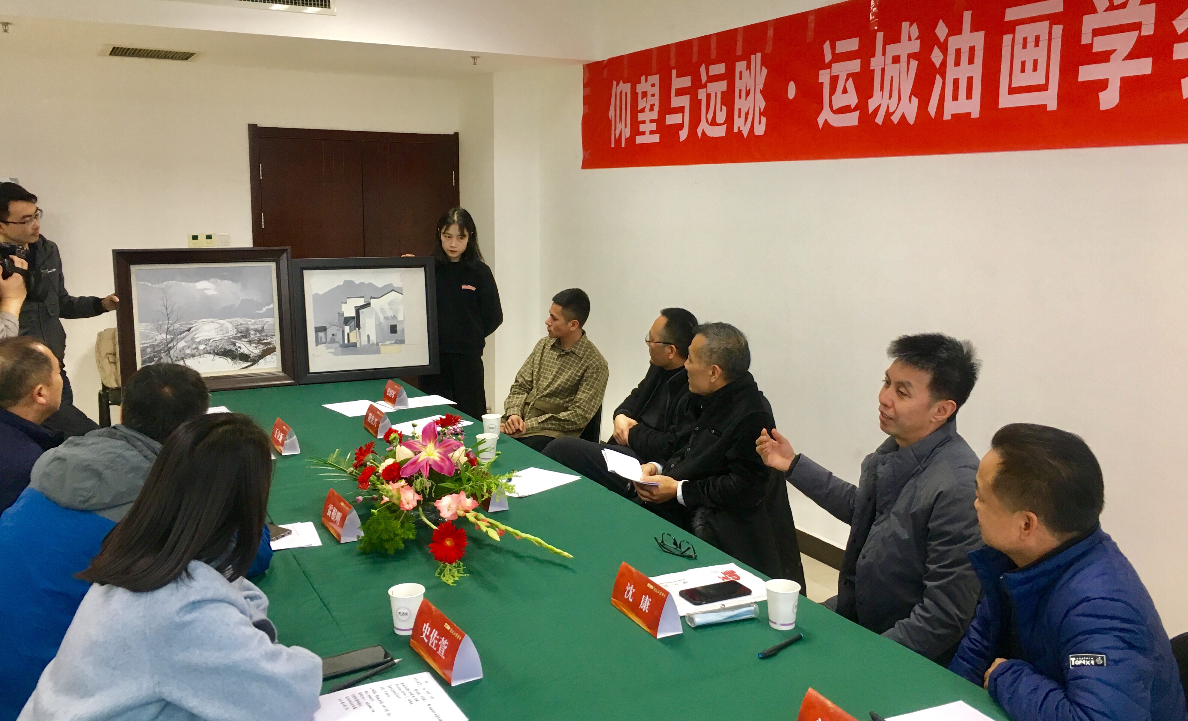 1月5日,运城油画学会的专家在对两幅油画作品进行研讨。 当日,来自我市油画学会的十余名专家在市电视台举行主题为“仰望与远眺”的交流研讨会,并对2020年度学会工作作了部署。 该学会成立两年多来,组织我市油画艺术家广泛参与国家、省、市级的各种展览,有不少作品在展览中大放异彩。在新的一年里,该学会将引领我市老、中、青艺术家齐心协力、共同进取,努力打造一支更加优秀的油画专业队伍。 本报记者 金玉敏 摄影报道