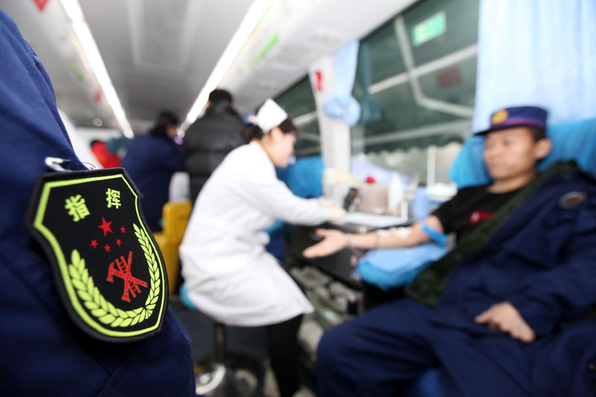 ▲1月9日,运城经济技术开发区消防救援大队指战员在无偿献血。