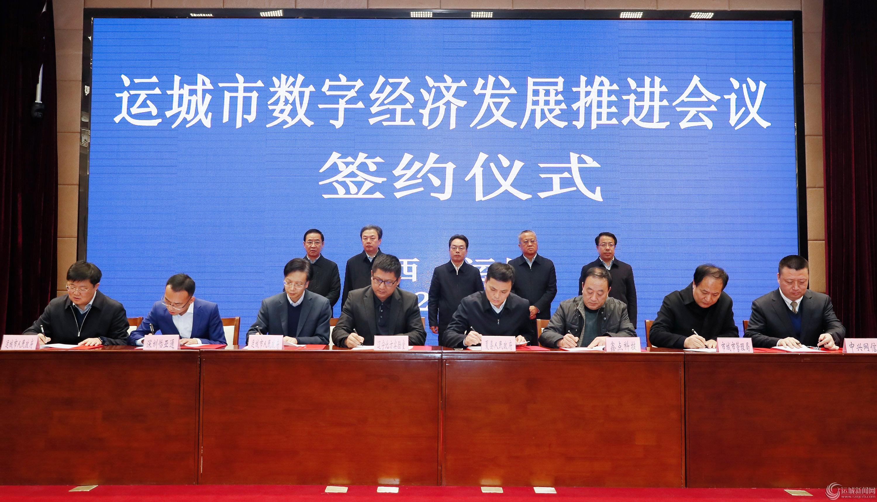 会议第二阶段举行签约仪式。在与会领导的见证下,市县两级政府、我市企业分别与深圳市怡亚通供应链股份有限公司、中国移动通信集团、紫光集团等国内数字经济领域大集团签署了“供应链综合商业服务平台合作项目”“5G智慧教育创新实验室合作项目”“运城市工业云建设合作项目”等12个项目合作协议。