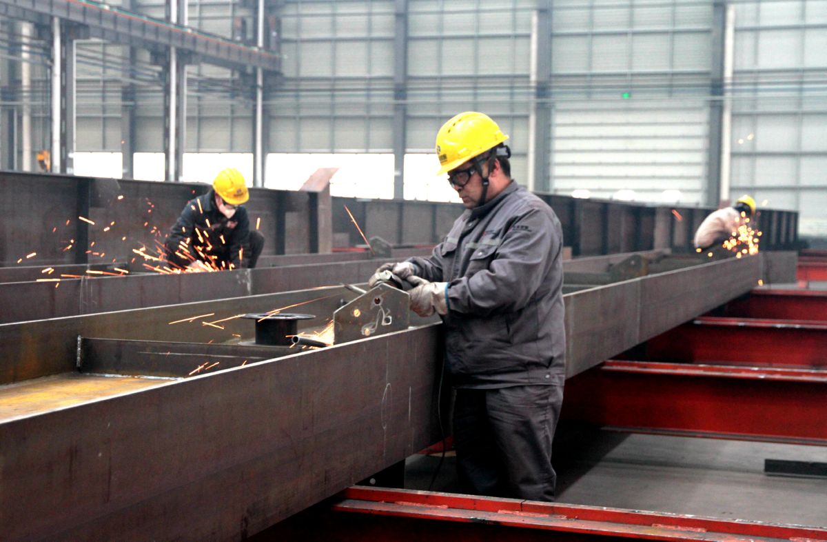 华兆东南绿建位于运城经济开发区。走进装配式中重型钢结构车间,头顶上若干架忙碌往返的20吨行车,轻松地吊着庞大的钢部件,在宽阔的车间来回移动。三三两两的工人操作着电焊,在各种钢结构构件的“缝隙”里溅出簇簇火花。
