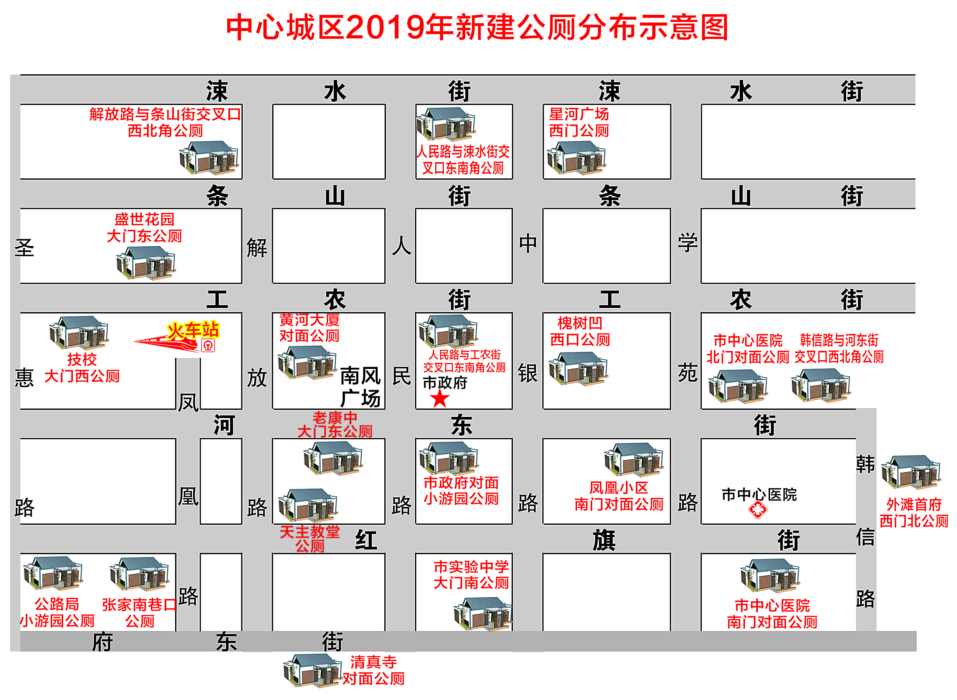 中心城区新建公厕项目,是市政府确定在2019年度实施的十件民生实事之一,项目总投资386万元。在中心城区新建公厕20座,其中,15.2㎡公厕16座、20㎡公厕2座、33.9㎡公厕2座。截至目前,新建的20座公厕已基本完工,并完成通水、通电等测试工作。
