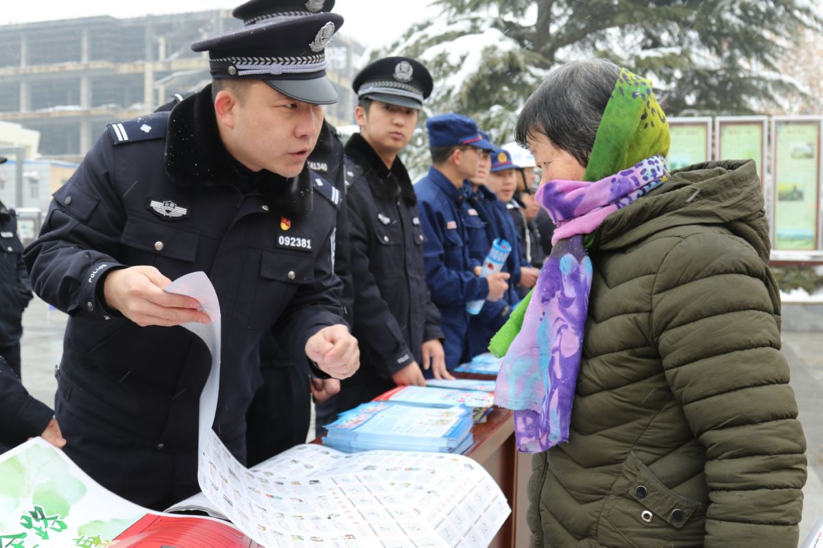1月9日,运城经济技术开发区公安分局冒雨在辖区繁华地段禹都南门开展110主题日宣传活动。通过版面展览、发放传单、赠送图册、解答咨询、悬挂标语等多种形式,以深入浅出,通俗易懂的方式向群众宣传如何正确拨打、什么情况下拨打110;讲解如何防火、防盗、防骗、防抢等治安防范知识和技巧,叮嘱大家在春节或节日期间禁止燃放烟花爆竹,严防各种火灾和火情发生,确保生命财产不受损失。