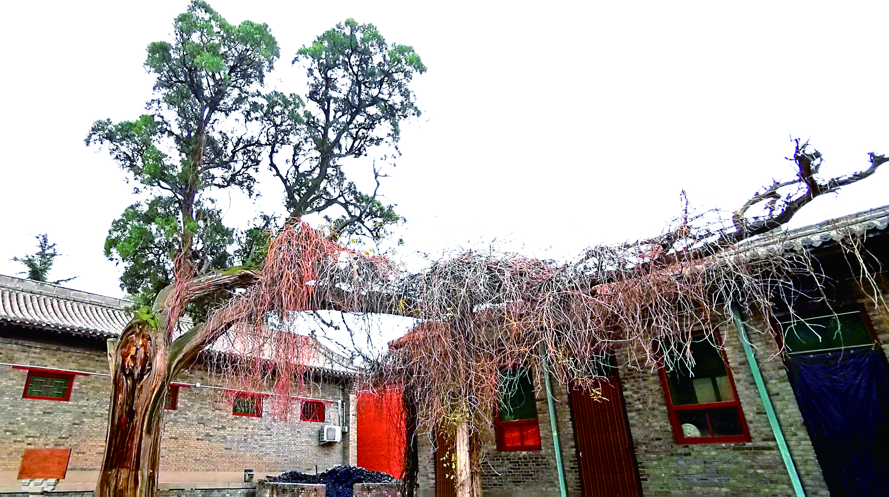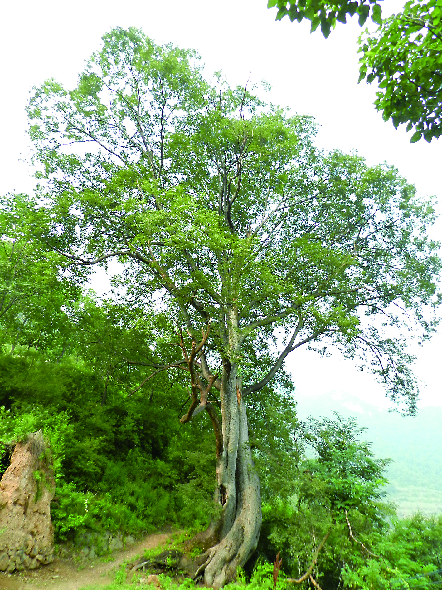 ▲平陆县杜马乡贤良古皂荚 该树树龄约360年,生长于农户院顶麦场上,树冠很大,生长旺盛,树形完美,具有很高的观赏价值,是全村的吉祥树。