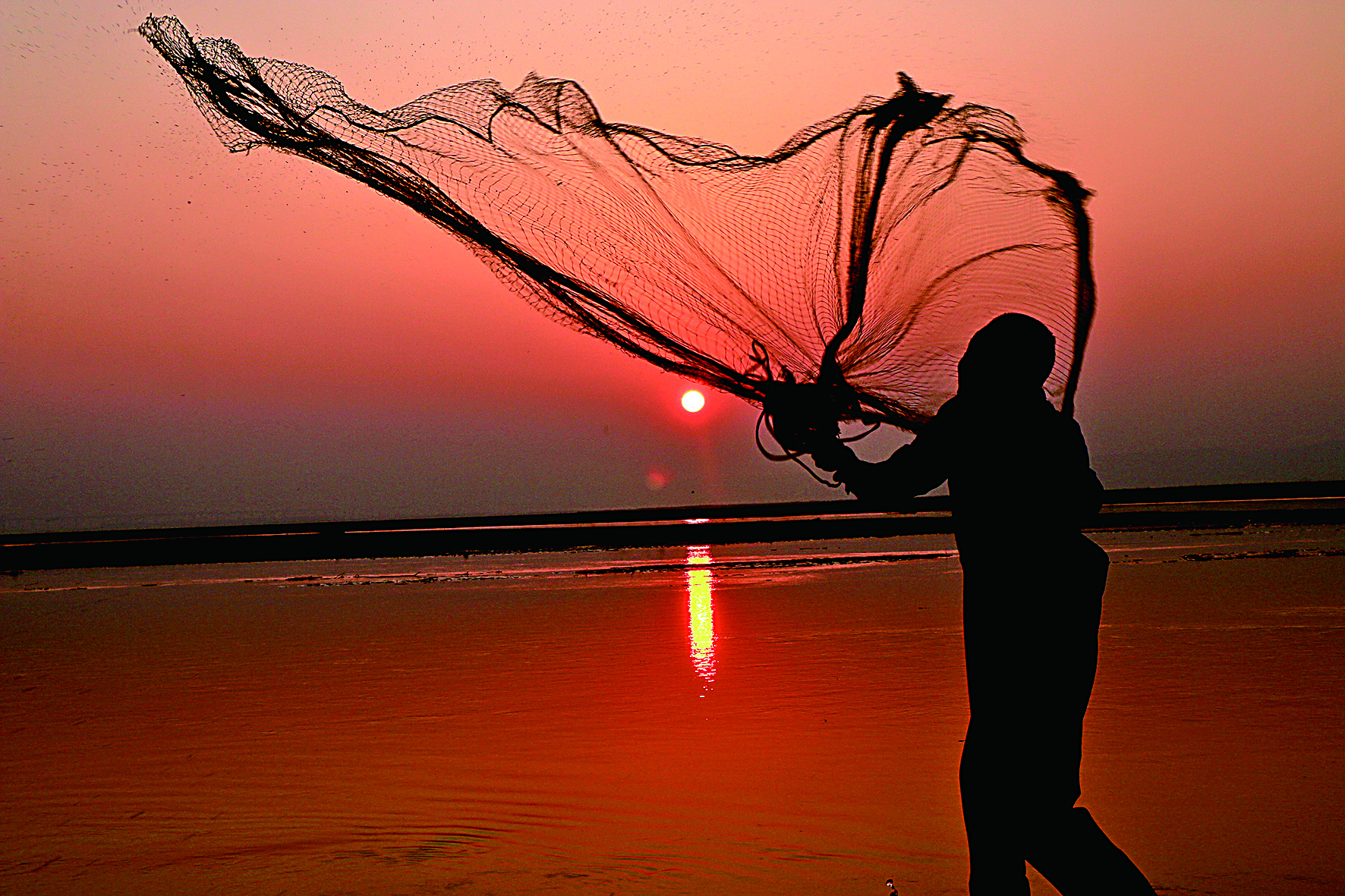 1月12日,临猗县潘侯村村民在黄河撒网捕鱼。 近年来,依托地理优势,潘侯村捕捞业逐渐兴起,不仅提高了村民生活质量,还增加了收入。特约摄影 崔益民