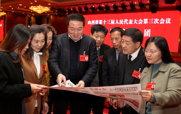 运城新闻网讯 1月15日,参加省十三届人大三次会议的运城代表团代表,利用会议间隙,认真学习《山西日报》有关政府工作报告摘要。 记者 雷哲侠 摄