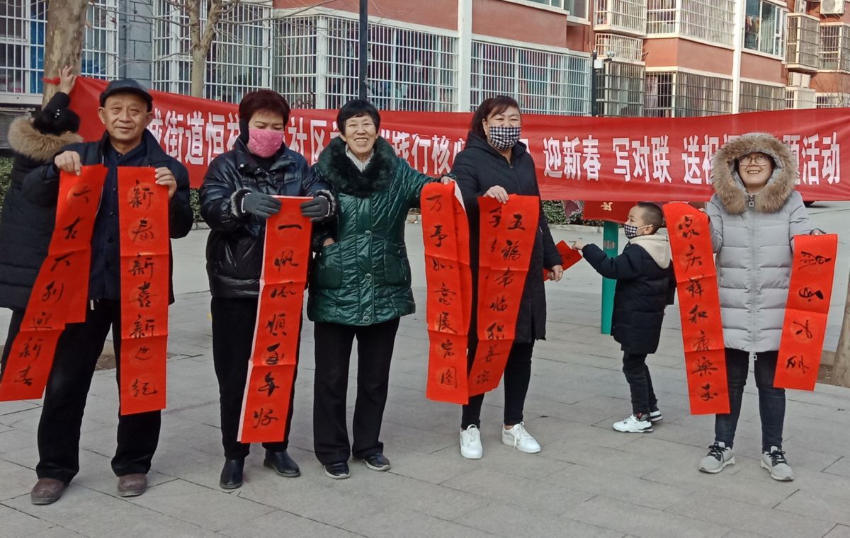▲1月13日,盐湖区北城办恒祥佳苑社区居民在展示手中的春联。