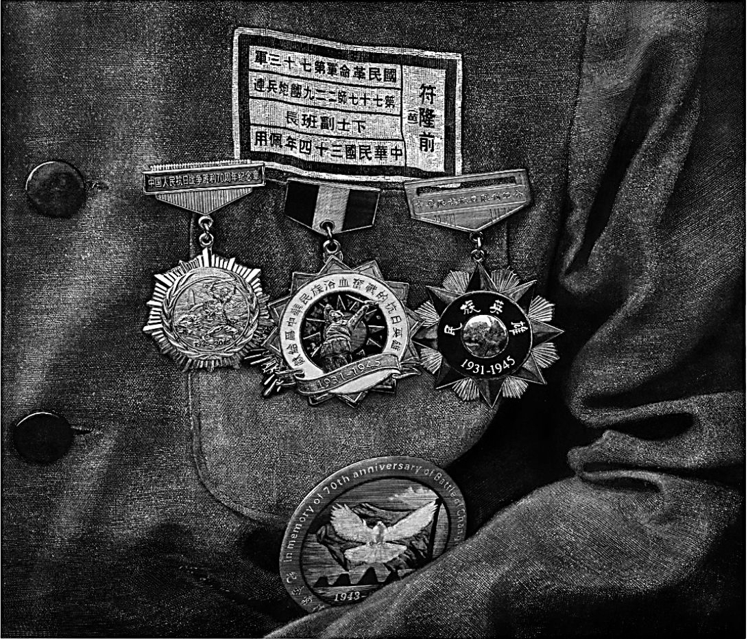 这幅版画反映的是千千万万为国家、为民族捐躯的先烈缩影,用浓墨重笔聚焦英雄,写照历史。向这些抛头颅、洒热血,为国家英勇牺牲、作出卓越贡献的共和国战士们致敬。一幅黑白版画作品,一个没有主角的局部特写,凭借着几枚沉甸甸的奖章以及粗布军服质感,吸引着人们的视线。它的感染力、冲击力,得到了专家评委的认可,成功入选庆祝中华人民共和国70周年第十三届全国美术作品展。这是艺术的魅力,更是抗战英雄为国家浴血奋战,舍小家、为大家,先天下之忧而忧,后天下之乐而乐的感召力。