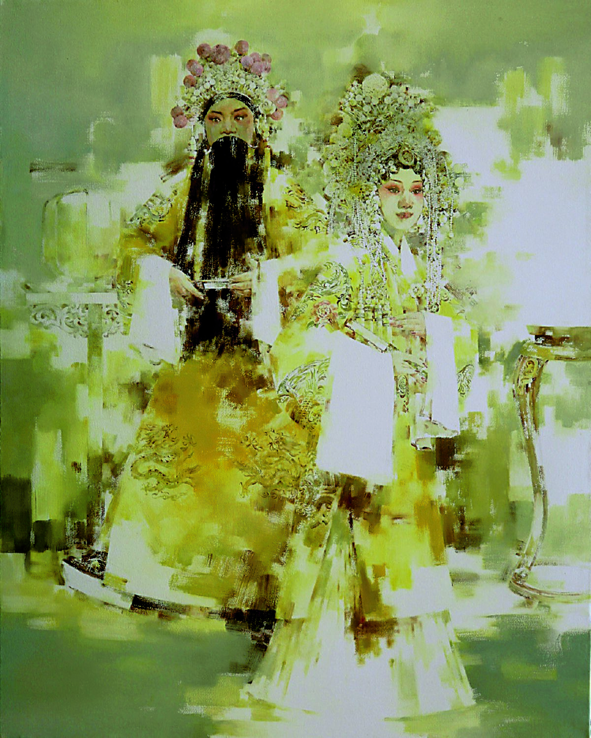 创作《家·国·情》取材于运城市蒲剧团的经典剧目《打金枝》,通过实地考察,收集创作素材。画面从蒲剧人物舞台形象的艺术特征入手,从表现服装色彩、人物动态、头饰造型等方面,来对蒲剧人物进行深入剖析。以戏曲人物在当代水彩创作中的表现形式为切入点,从意象呈现、戏剧色彩、个性特征三个角度表现戏曲人物,以不同角度的表现形式呈现出不同的画面效果。结合当代水彩画家戏曲题材的作品,突出水彩戏曲人物的审美价值,让中国传统戏曲人物在水彩作品中得到充分表达,对中国文化民俗与现代艺术的继承与发扬。研究水彩创作在吸收地方本土文化精髓的同时,探索如何拓展自己的水彩语言与风格。