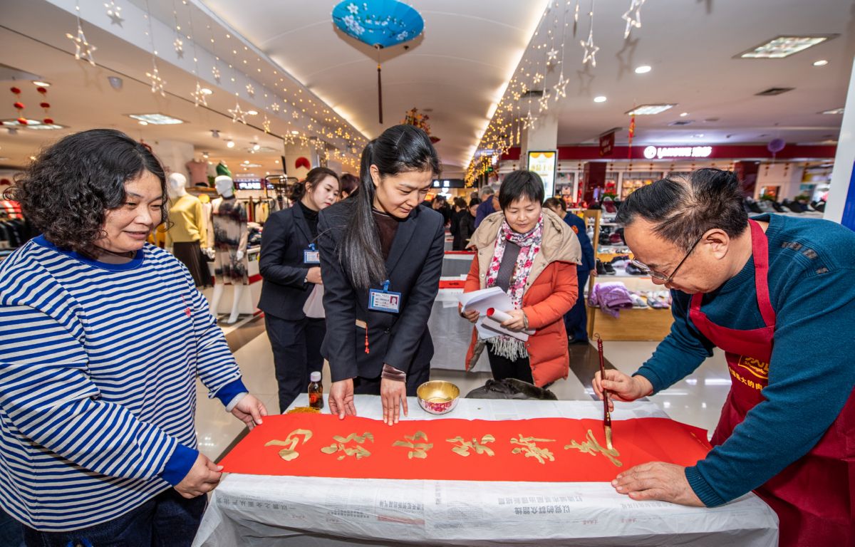 迎新年 写春联 1月20日,运城市老年书画家协会会员在运城购物中心义务给顾客书写春联。 当日,购物中心开展“书写对联迎新春”活动,来自运城市老年书画家协会的9名会员,在该协会主席董长河的带领下,到运城购物中心义务为顾客书写500多副春联,把新春的祝福送给顾客。 ( 记者 薛俊 摄)